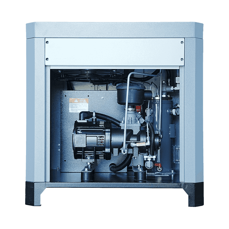 มอเตอร์ที่จ่ายกำลังให้กับคอมเพรสเซอร์นั้นเป็นมอเตอร์ซิงโครนัสแม่เหล็กถาวรระบายความร้อนด้วยน้ำมัน พร้อมด้วยแม่เหล็กถาวรคุณภาพสูง คุณลักษณะอย่างหนึ่งคือไม่มีกระแสกระตุ้นโรเตอร์ ซึ่งช่วยรักษาประสิทธิภาพให้คงที่ตลอดช่วงการทำงาน เมื่อเปรียบเทียบกับมอเตอร์อะซิงโครนัสแบบดั้งเดิม กระแสไฟฟ้าเริ่มต้นของมอเตอร์ประเภทนี้จะต่ำกว่า ช่วยลดผลกระทบทางไฟฟ้าต่อโครงข่ายไฟฟ้าในระหว่างการสตาร์ท วงจรระบายความร้อนของมอเตอร์ใช้ระบบไมโครออยล์เดียวกัน ทำให้สามารถระบายความร้อนโดยตรงจากพื้นผิวโรเตอร์และสเตเตอร์ ซึ่งช่วยป้องกันความร้อนสูงเกิน ช่วยยืดอายุการใช้งาน และรับประกันความน่าเชื่อถือในระหว่างการใช้งานในอุตสาหกรรมหนัก ประสิทธิภาพที่คงที่และตัวประกอบกำลังที่สม่ำเสมอทำให้ชุดมอเตอร์และระบบอัดอากาศมีความเหมาะสมอย่างยิ่งสำหรับการผลิตอากาศอัดที่มีความเสถียร